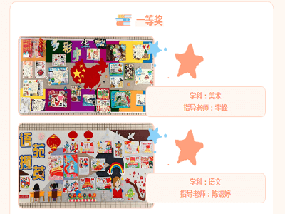 为弘扬中华优秀传统文化,激发同学们的爱国热情,我校小学部10月份开展以“多彩中华”为主题的学科园地与以“班级文化展示”为主题的班级板报评比活动。各班级围绕民族文化、历史故事、红色精神等元素,用创意与画笔描绘对祖国的热爱与祝福。