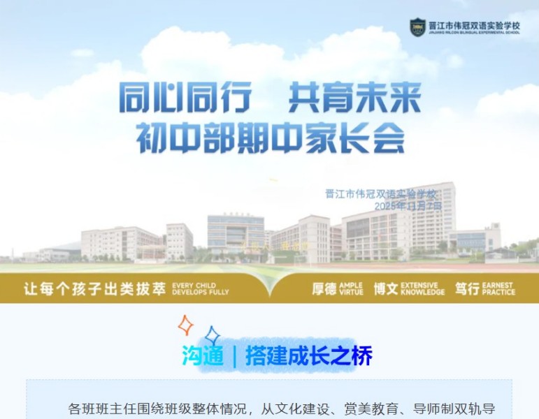 同心同行,共育未来|晋江市伟冠双语实验学校初中部期中家长会温暖启程