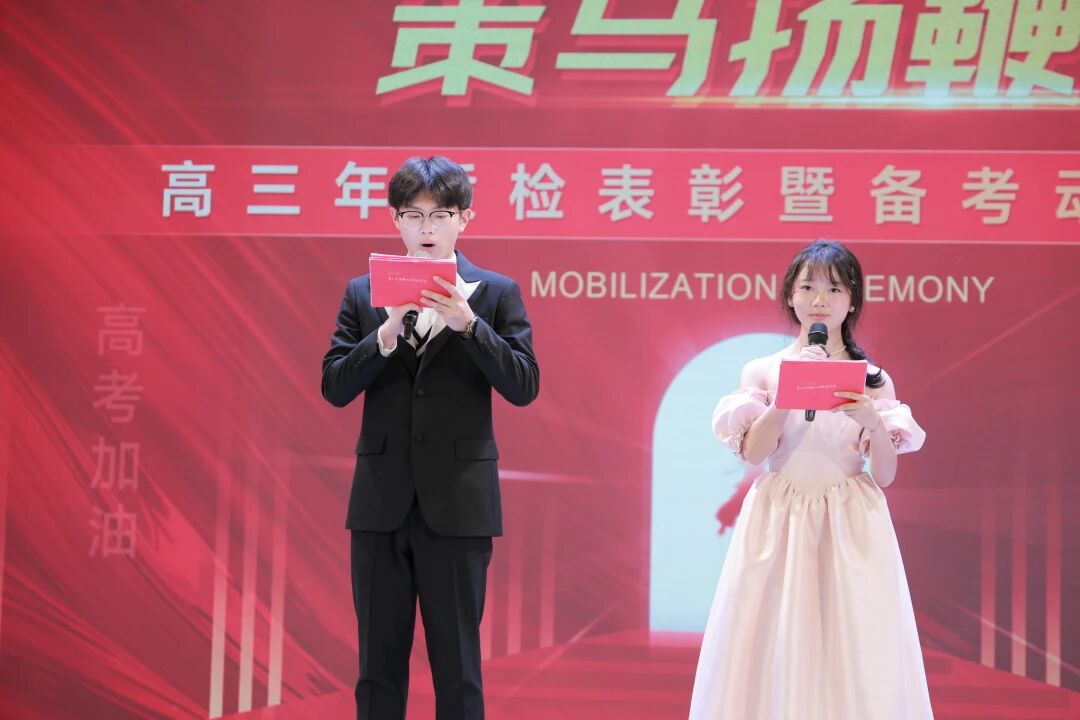 秋风起时,百穀丰登;旌旗展处,壮志飞扬。在这充满收获与希望的季节里,伟冠高三年段全体师生与家长代表齐聚校园,隆重举行“乘风破浪战高考,策马扬鞭创伟冠”质检表彰暨备考动员大会。本次大会由高三(5)班李喆豪同学与高三(7)班曾诗妍同学共同主持。