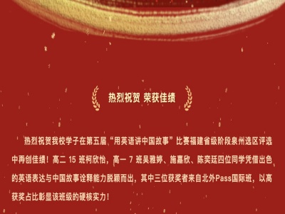 我校学子在第五届用英语讲中国故事比赛福建省级阶段泉州选区获奖