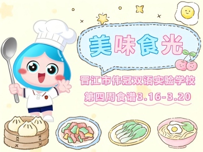 晋江市伟冠双语实验学校第四周菜单3.16-3.20