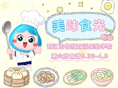 晋江市伟冠双语实验学校第六周菜单3.30-4.3