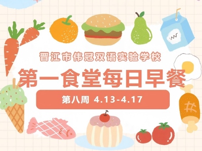晋江市伟冠双语实验学校第一食堂第八周每日早餐4.13-4.17