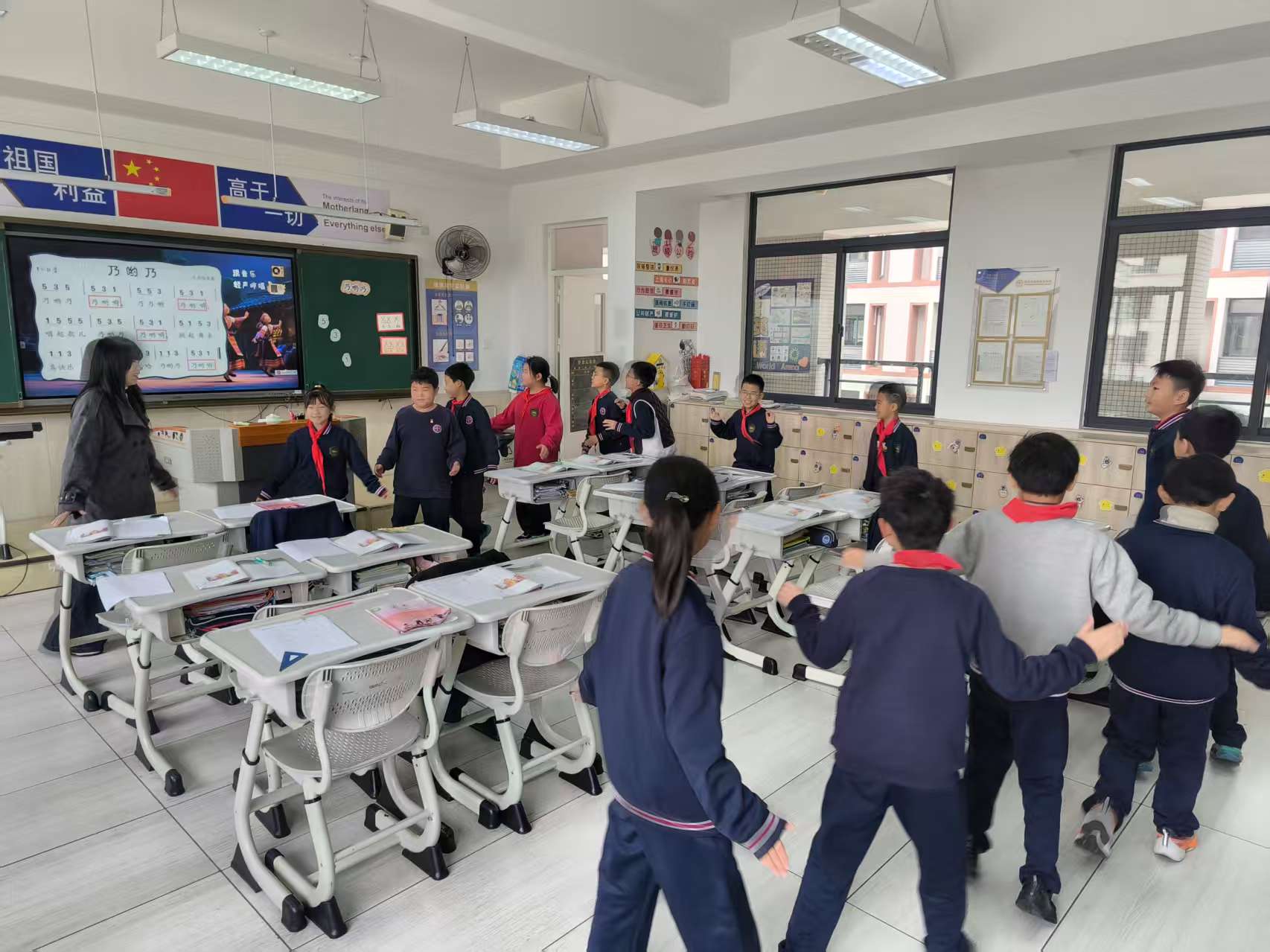 “乃哟乃~乃哟嗬~”清脆欢快的歌声从三年2班的教室传来,伴随着整齐的舞步和灿烂的笑容,一场沉浸式土家族音乐之旅正在精彩上演。梁欣洁老师带领同学们走进土家族的音乐世界,通过学唱民歌《乃哟乃》、体验摆手舞,在旋律与律动中感受民族文化的独特魅力。课堂伊始,梁老师以 “大巴车开进土家族村寨” 的情境导入,通过趣…