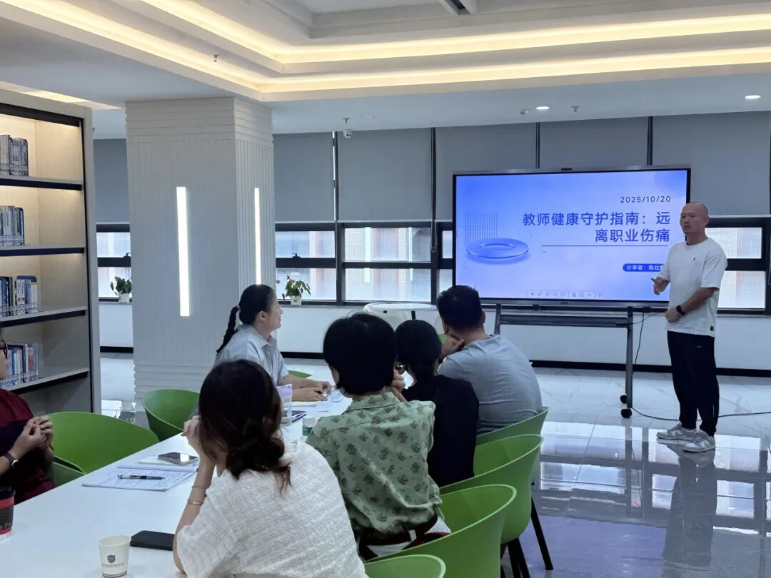体育老师带操时悄悄揉腰,美术老师改完画作后甩着手腕,信息技术老师盯着屏幕不停眨眼,音乐老师指挥完合唱后背有点发僵……这些藏在课堂里的“小不舒服”,老师们常不当回事,却慢慢影响状态。10月20日,高中综合组专门组织了“教师健康守护”教研活动,跟着《远离职业伤痛》的分享学防护,还琢磨着把这些实用招儿带进学生课…