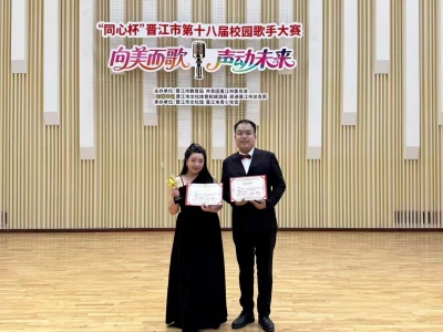 歌声传情,艺韵育人。11月6日晚,“同心杯”晋江市第十八届校园歌手大赛教师组圆满落幕,我校陈紫馨、曾逸鑫两位老师凭借扎实的演唱功底和动人的舞台表现,在教师组激烈角逐中脱颖而出,分别荣获二等奖与三等奖!