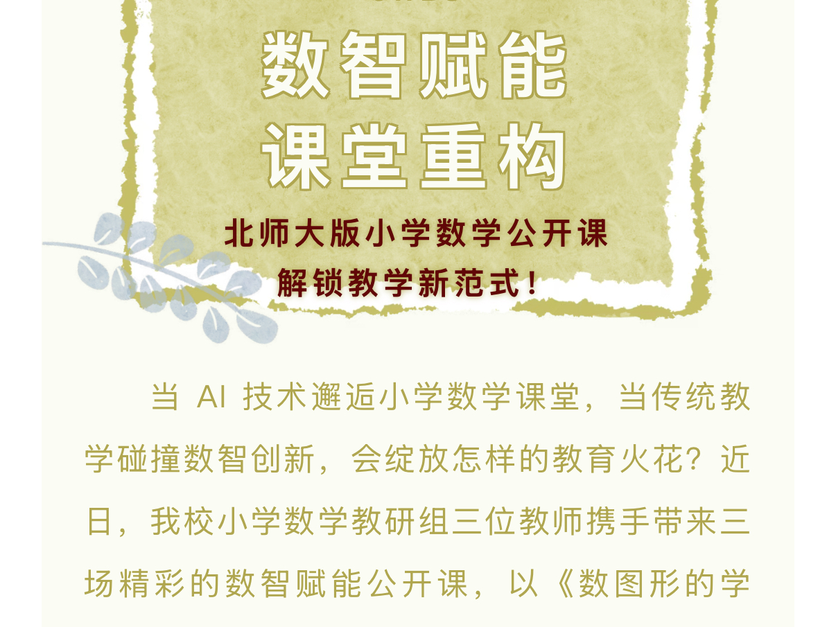 当 AI 技术邂逅小学数学课堂,当传统教学碰撞数智创新,会绽放怎样的教育火花?近日,我校小学数学教研组三位教师携手带来三场精彩的数智赋能公开课,以《数图形的学问》《反弹高度》《看图找关系》为载体,用数智赋能重构课堂生态,让核心素养培育落地生根,为孩子们带来了沉浸式、互动式的数学学习新体验!