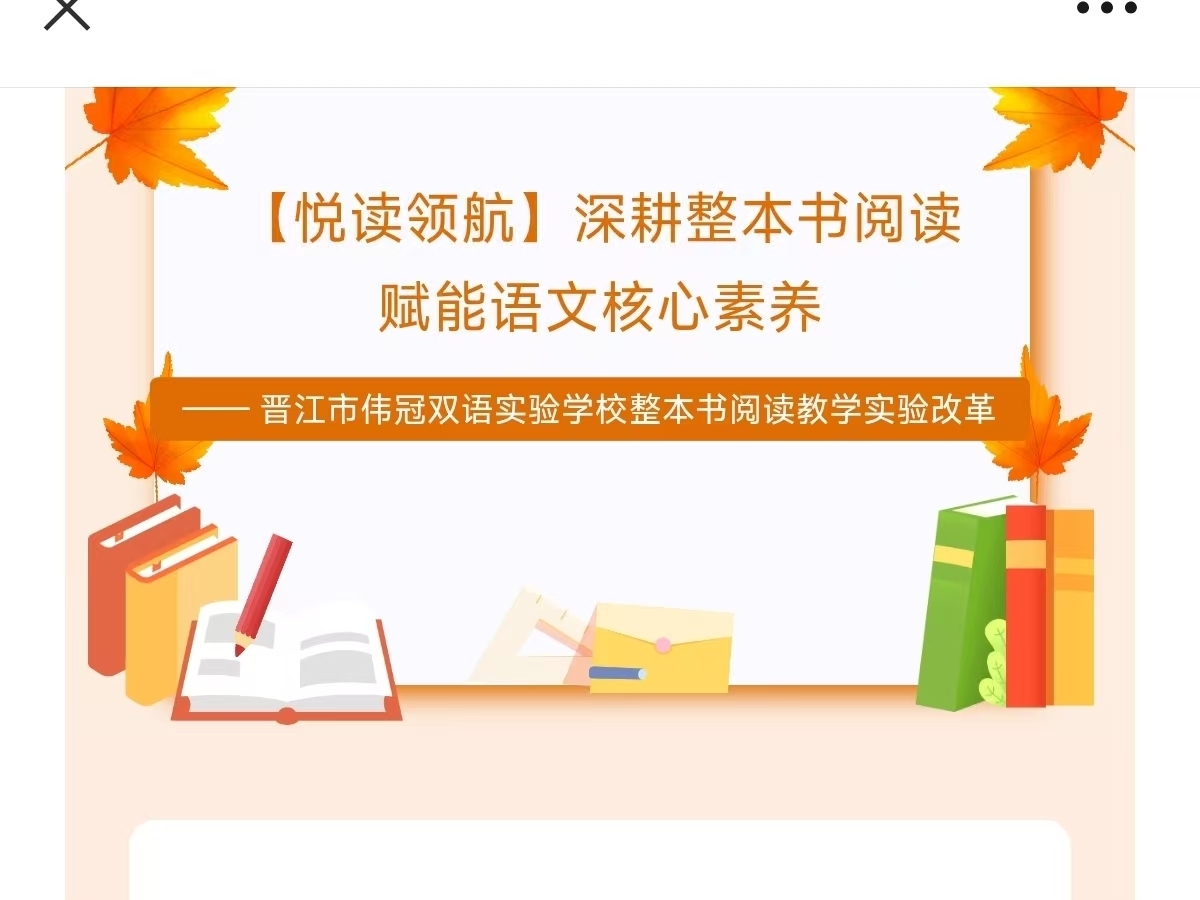 立身以立学为先,立学以读书为本。” 为落实《义务教育语文课程标准》“整本书阅读” 要求,破解小学语文 “碎片化阅读”“兴趣薄弱”“方法缺失” 等难题,自晋江市伟冠双语实验学校正式启动晋江市课改实验项目 ——《基于新课标学习任务群下的整本书阅读教学策略》以来,全校语文教师深耕教研、扎实推进,目前该改革实践正…