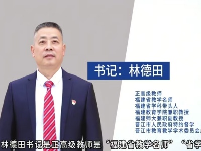 林德田书记:正高级教师,福建省教学名师,福建省学科带头人,福建教育学院兼职教授,福建师大兼职副教授,晋江市人民政府特约督学,晋江市教育教学学术委员会成员。